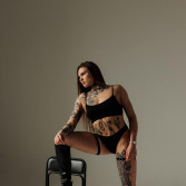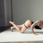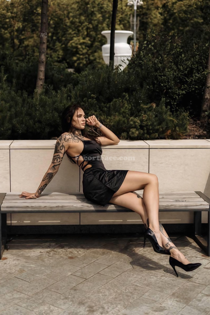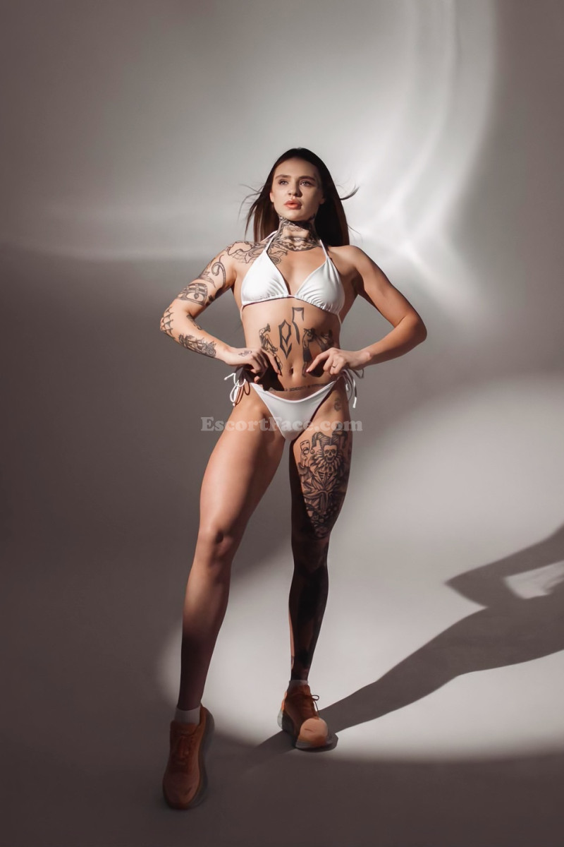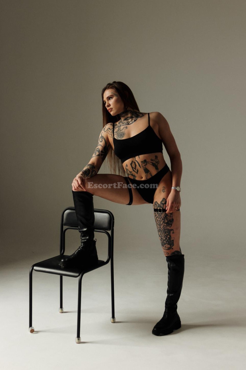 Tonya – a girl with character. Athletic, daring, covered in tattoos. If you're looking for someone unusual – this is her. She gives deep blowjobs, swallows cum and doesn't flinch. Want to cum on her face – go ahead, she likes it. She can become a mistress and command you, and if you want thrilling sensations – she has a strap-on and knows how to use it. Tonya loves girls, so couples will find her interesting. She's not shy at all and loves it when everything is adult-style.